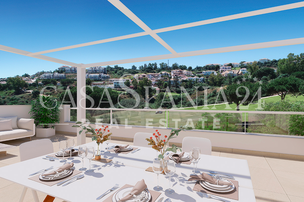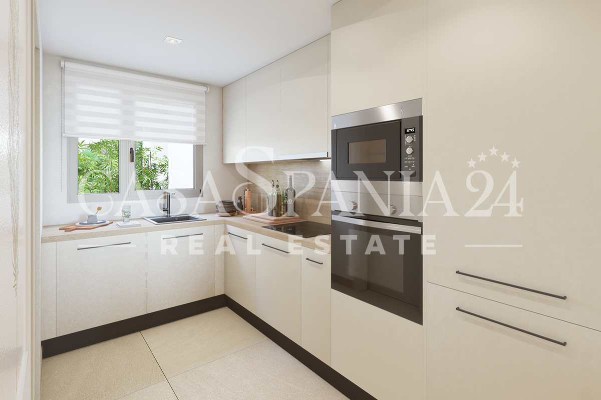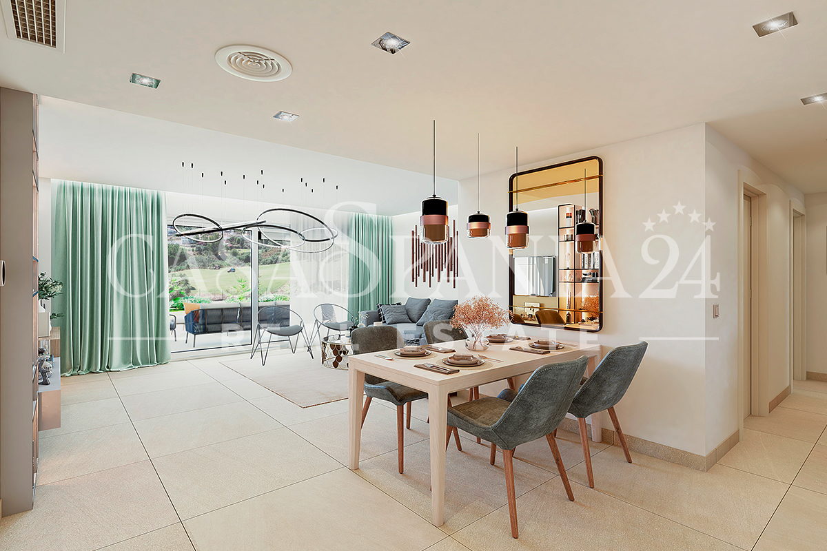 Apartment mit 2 Schlafzimmern, 2 Badezimmern, Küche, Wohnzimmer mit Essbereich, 23 m² Terrasse und Parkplatz.