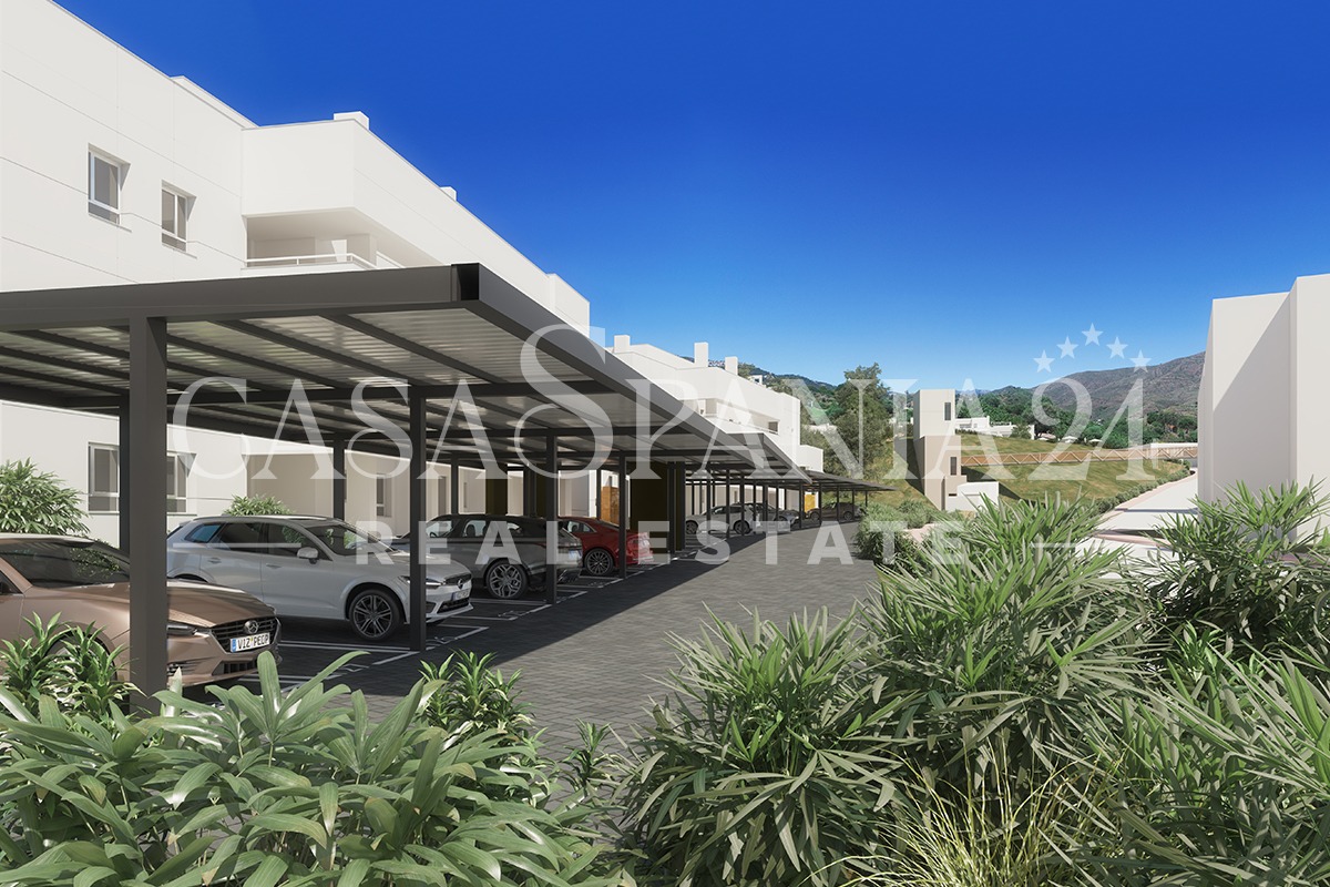 Jeder Parkplatz verfügt über hohle Leitungsrohre, um die Installation einer Ladestation für Elektrofahrzeuge zu ermöglichen. Der Zugang zum Parkplatz erfolgt über eine motorisierte Tür, die per Fernbedienung bedient wird. Die Häuser verfügen außerdem über einen Terrassenschrank für zusätzlichen Stauraum.
