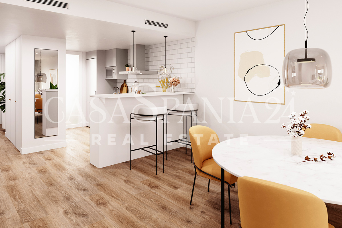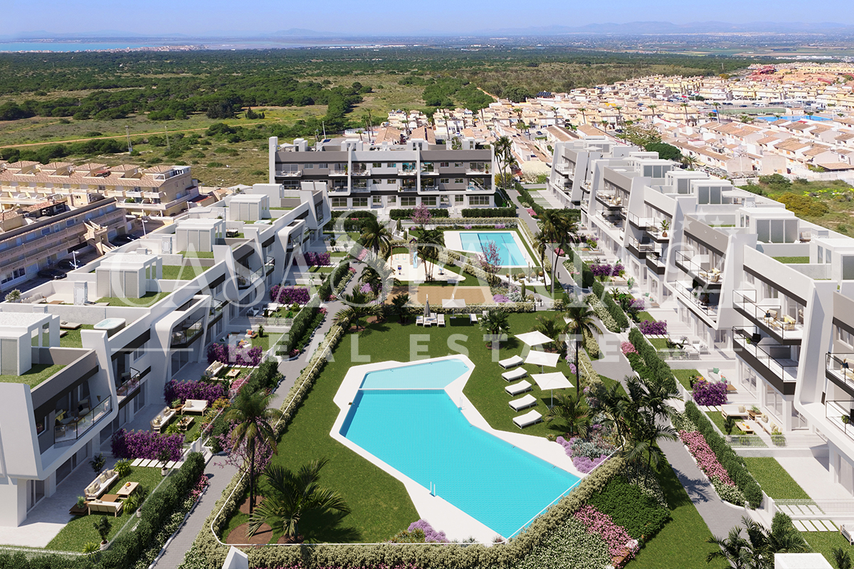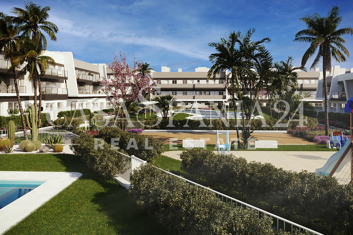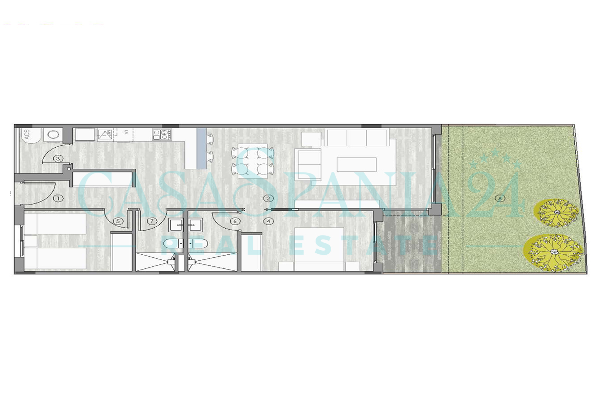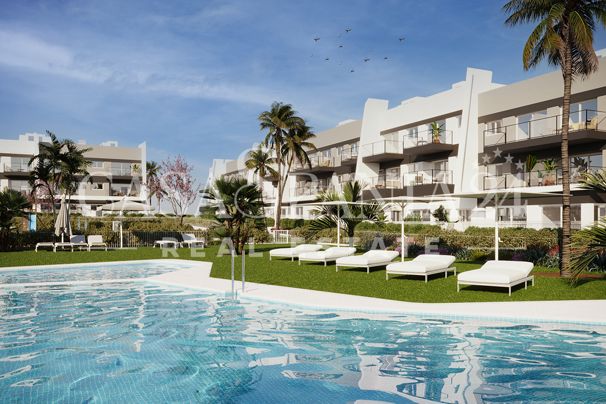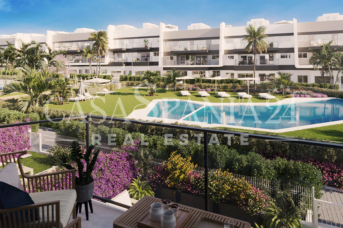 Apartment mit 2 Schlafzimmern, 2 Bädern, offenem Wohnzimmer mit Küche und Garten von 45,22 m2, Parkplatz und Abstellraum, nur 15 Gehminuten vom langen, mit der Blauen Flagge ausgezeichneten Strand von Carabassí entfernt!